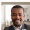 Smiling man in a suit in a modern office setting.
